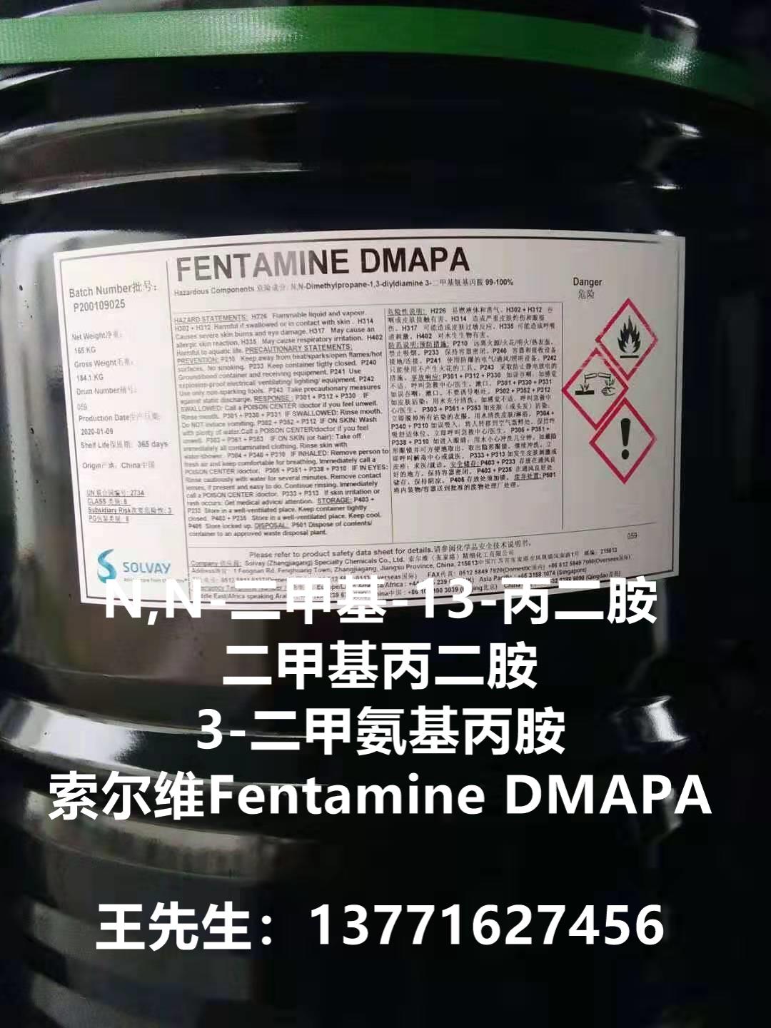 產(chǎn)品應(yīng)用: | N,N-二甲基-1,3-丙二胺(二甲基丙二胺,3-二甲氨基丙胺,DMAPA)可合成農(nóng)藥中間體霜滅威; N,N-二甲基-1,3-丙二胺(二甲基丙二胺,3-二甲氨基丙胺,DMAPA)作為固化劑再環(huán)氧樹脂行業(yè)應(yīng)用; N,N-二甲基-1,3-丙二胺(二甲基丙二胺,3-二甲氨基丙胺,DMAPA)作為染料中間體,再在染料行業(yè)廣泛應(yīng)用; N,N-二甲基-1,3-丙二胺(二甲基丙二胺,3-二甲氨基丙胺,DMAPA)作為水處理單體產(chǎn)品的合成原料;N,N-二甲基-1,3-丙二胺(二甲基丙二胺,3-二甲氨基丙胺,DMAPA)在日化行業(yè)作為原料生產(chǎn)甜菜堿等產(chǎn)品; N,N-二甲基-1,3-丙二胺(二甲基丙二胺,3-二甲氨基丙胺,DMAPA)作為離子交換樹脂的原料使用; N,N-二甲基-1,3-丙二胺(二甲基丙二胺,3-二甲氨基丙胺,DMAPA)作為醫(yī)藥中間體,合成各種醫(yī)藥類產(chǎn)品; N,N-二甲基-1,3-丙二胺(二甲基丙二胺,3-二甲氨基丙胺,DMAPA)在聚氨酯行業(yè)作為聚氨酯催化劑使用; |