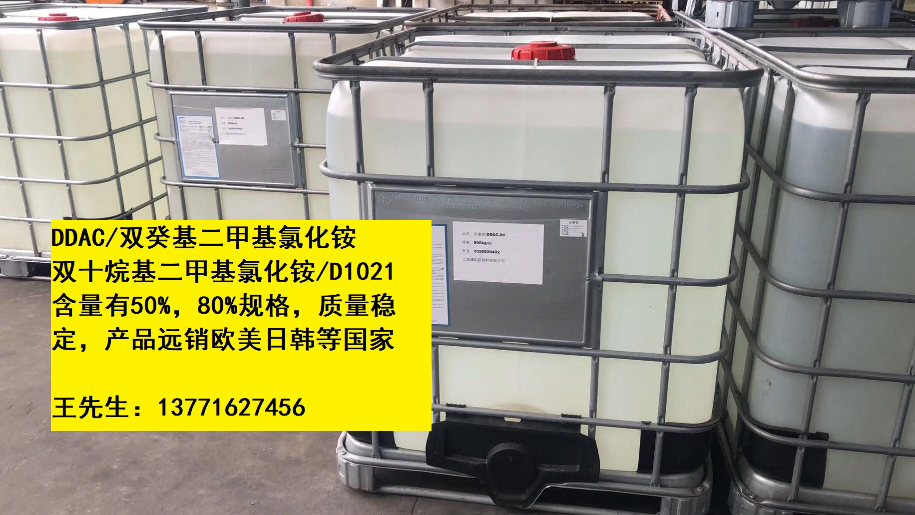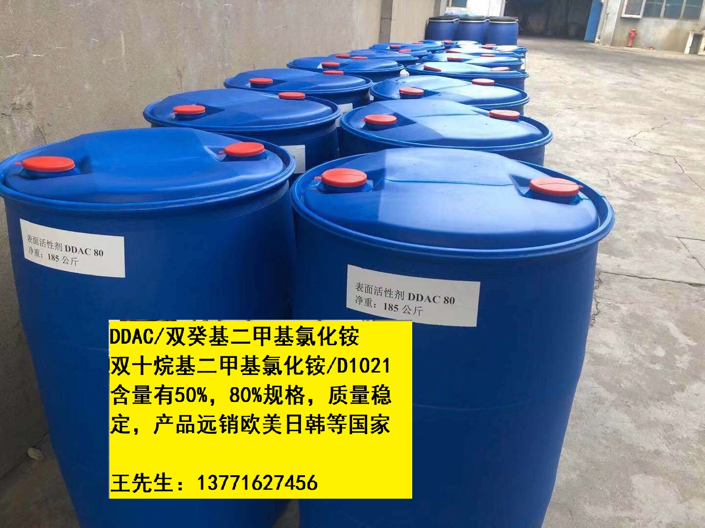產品應用: | 雙癸基二甲基氯化銨(D1021,DDAC)具有強烈的殺菌功效,是一種廣譜的殺菌劑,殺菌效果強于1227(十二烷基二甲基芐基氯化銨,苯扎氯銨),廣泛應用于工業水處理,畜牧業殺菌,游泳池殺菌等行業; 雙癸基二甲基氯化銨(D1021,DDAC)具有優良的柔軟作用; 雙癸基二甲基氯化銨(D1021,DDAC)具有良好的乳化作用; 雙癸基二甲基氯化銨(D1021,DDAC)亦可作為抗靜電劑使用; 雙癸基二甲基氯化銨(D1021,DDAC)在油田行業可作為油田回注水殺菌劑,廣泛應用于二次采油回注水殺菌,水溶性好,殺菌效果強烈,對于已產生耐藥性的細菌具有強烈的殺滅作用,適合于各種環境。 雙癸基二甲基氯化銨(D1021,DDAC)在醫藥衛生行業作為消毒殺菌劑使用; |