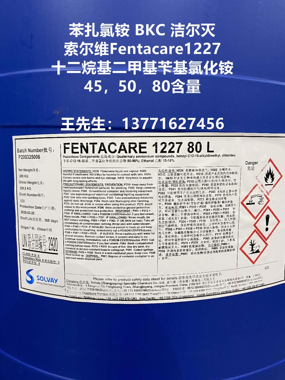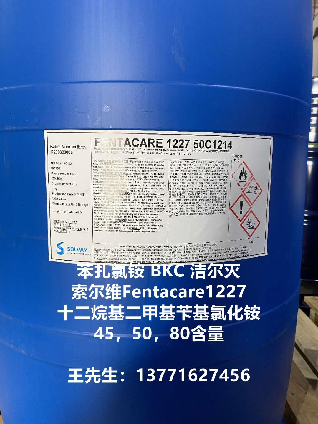 包裝 | 1227(苯扎氯銨,十二烷基二甲基芐基氯化銨,潔爾滅)為50,200,1000公斤/桶包裝;貯于室內(nèi)陰涼通風(fēng)處,防潮、嚴(yán)防曝曬,貯存期十二個(gè)月。 | |